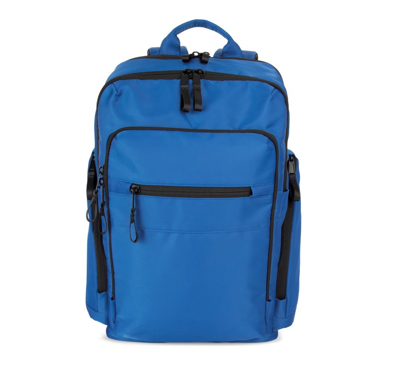 100% polyester. Sac à dos business haut de gamme. Trois compartiments pensés pour tous les usages. Compartiment frontal organisé avec poche zippée pour faciliter la personnalisation. Compartiment principal porte-documents avec plusieurs poches de rangement. Compartiment arrière indépendant pour ordinateur portable et tablette. Poches latérales zippées. Tirettes zippées en métal avec anneau d’extension, pour une meilleure prise en main et un design soigné. Bretelles ergonomiques, réglables, rembourrées et respirantes. Dos respirant avec bande pour fixation sur la poignée d’un trolley, pour un transport facilité. Poche de sécurité arrière avec fermeture zippée incurvée, au look moderne, idéale pour ranger en toute sécurité passeport, billets d’avion et téléphone.