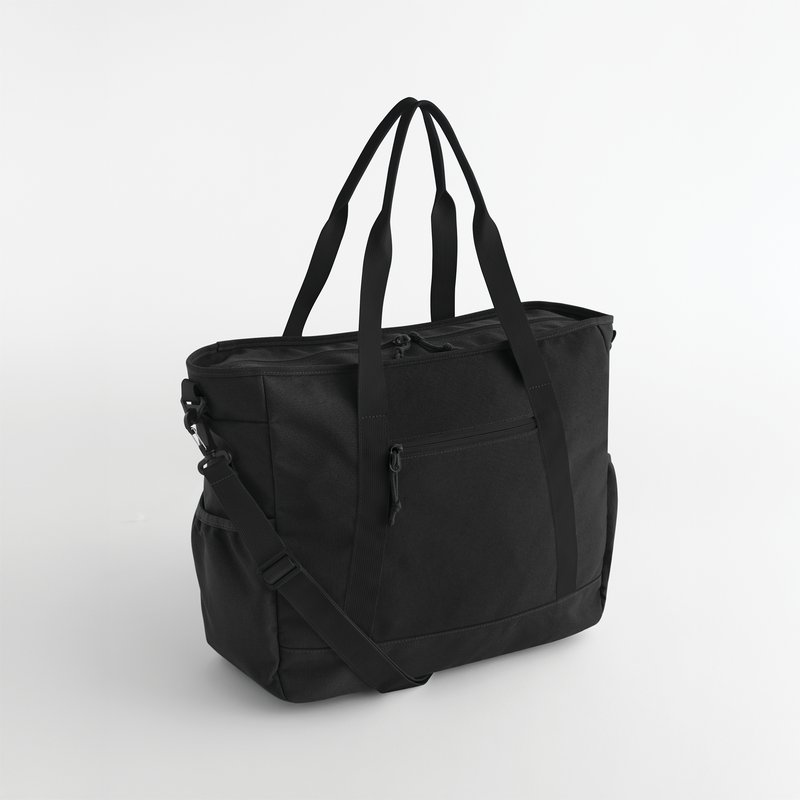 100 % polyester recyclé certifié GRS. Poche avant zippée. Poches latérales élastiquées. Compartiments intérieurs en filet. Tirettes de cordon robustes. Deux poignées de transport. Bandoulière réglable et amovible. Étiquette détachable pour un rebranding facile.