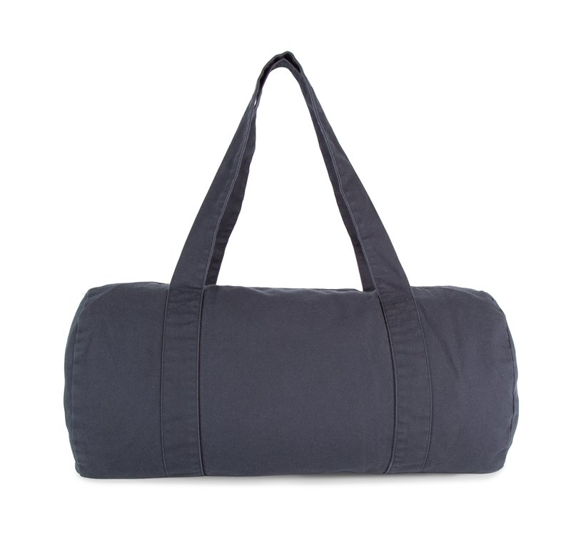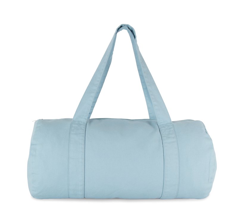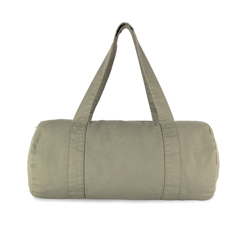 100% coton biologique. Duffle bag cylindrique en coton biologique délavé, pour un look vintage. L…