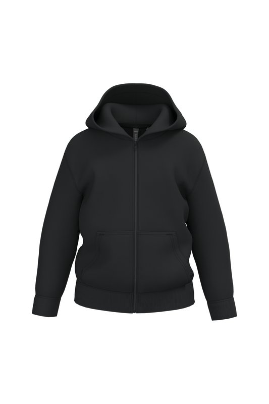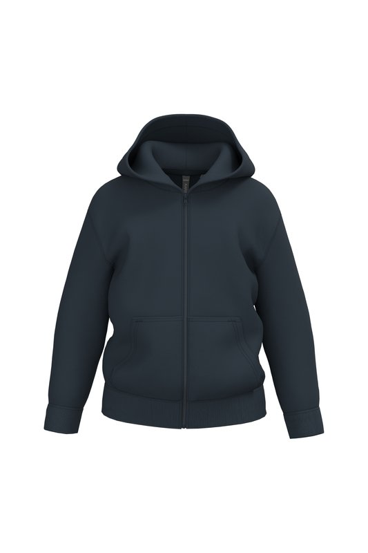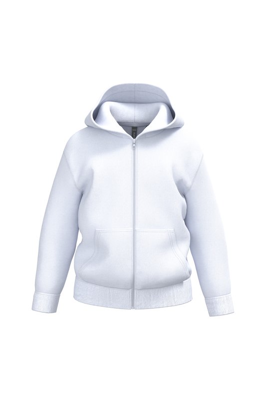50% coton ring-spun / 50% polyester recyclé post consumer. Molleton gratté. Coupe droite. Coupé cousu. Lavé aux enzymes. Bord-côte 2×1 montage tubulaire pour une meilleure finition au col, bas de manches et de vêtement. Finition double surpiqûres sur épaules, emmanchures, bas de manches et de vêtement. Poches kangourou. Fermeture zippée nylon ton sur ton. Capuche doublée en jersey. Bande de propreté en jersey ton sur ton à l’intérieur du col. Pas d’étiquette de marque au col, uniquement une puce de taille pour faciliter la personnalisation.